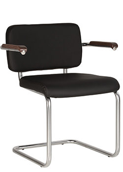Металлические подлокотники новой формы с накладками, выполненными из массива дерева, сидение имеет скругленный передний край