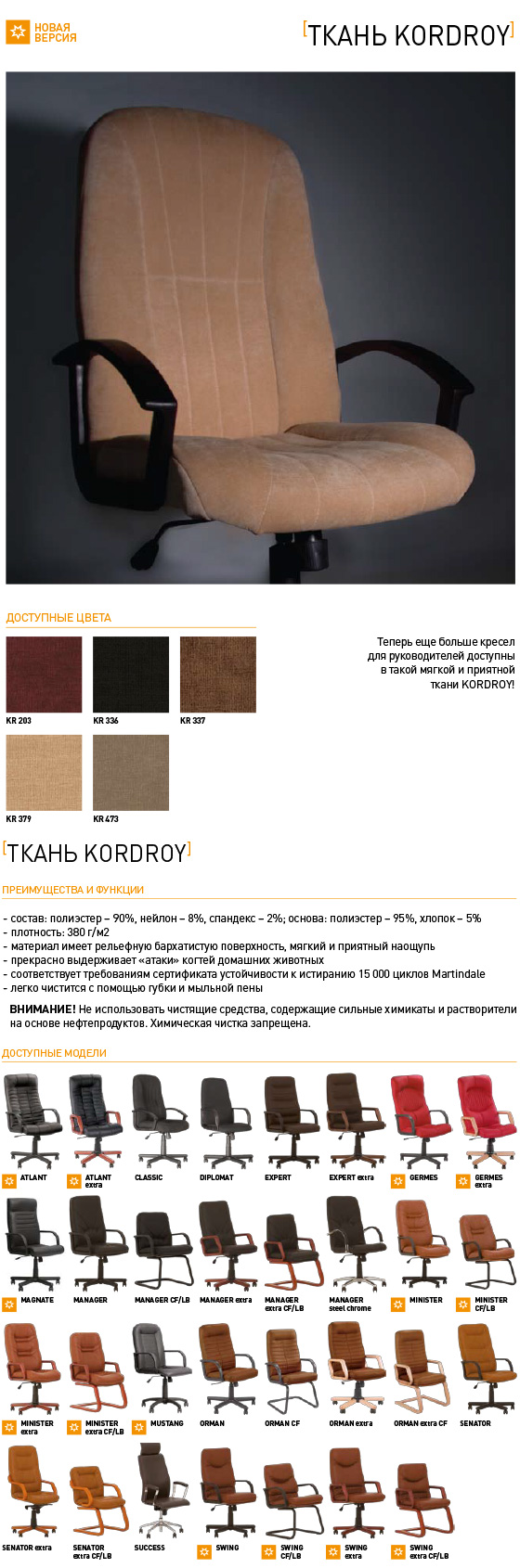 Теперь еще больше кресел для руководителей доступны в такой мягкой и приятной ткани KORDROY !