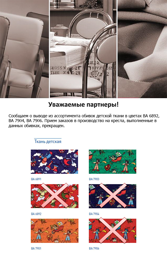 Вывод из ассортимента обивок BA6892, BA7904, BA7906