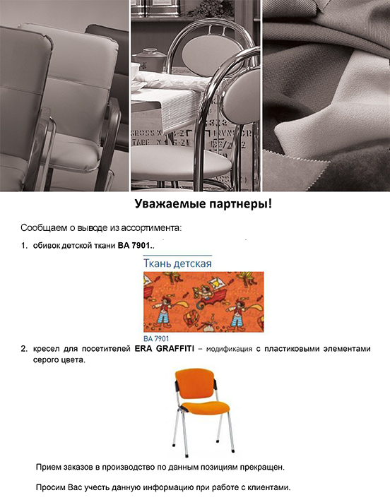 Вывод из ассортимента детской ткани ВА-7901 и кресел ERA GRAFFITI