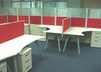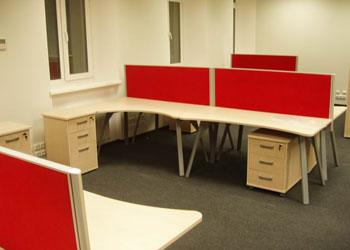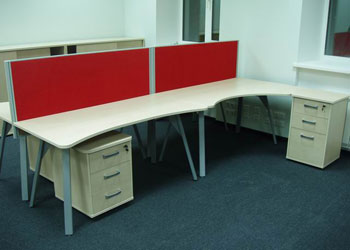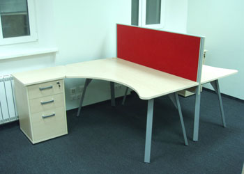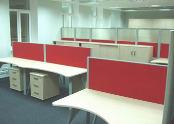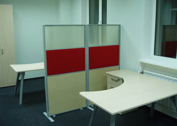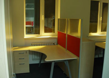 Особенность данного проекта, комбинированные мобильные перегородки с наполнением поликарбонат+ДСП+ткань корпоративного цвета. На наш взгляд получилось удачное сочетание с мебелью серии РЕГГИ. Использование разделительных экранов между фронтальными рабочими местами с дополнительным нижним отступом, придало стильность и функциональность, позволив разместить электро- и слаботочное оборудование.